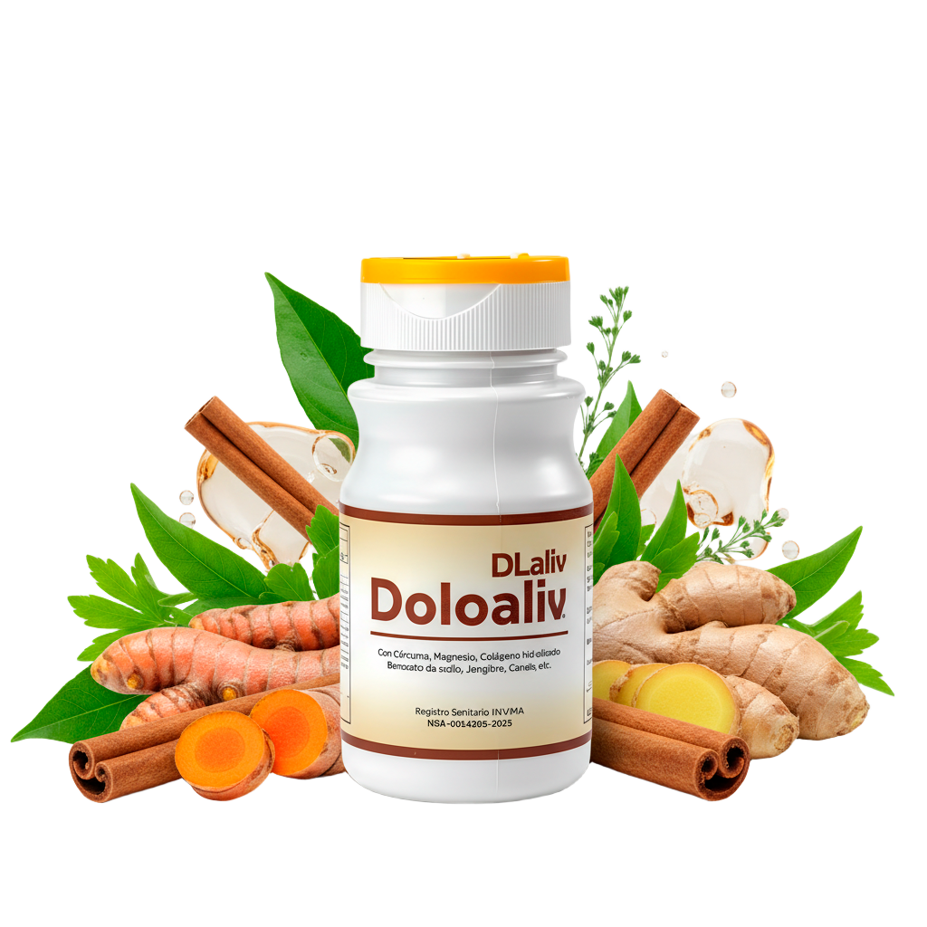 Doloaliv es un suplemento 100% natural diseñado para combatir el dolor articular, reducir la inflamación y regenerar el tejido dañado. Su fórmula avanzada combina ingredientes naturales de alta eficacia como cúrcuma, colágeno hidrolizado, bromelina, zinc, harpagofito y canela, entre otros. Apto para pacientes hipertensos y diabéticos.Gracias a su formulación natural, Doloaliv puede ser consumido con tranquilidad por personas con estas condiciones. ✨ Doloaliv – Tu aliado natural contra el dolor articular.